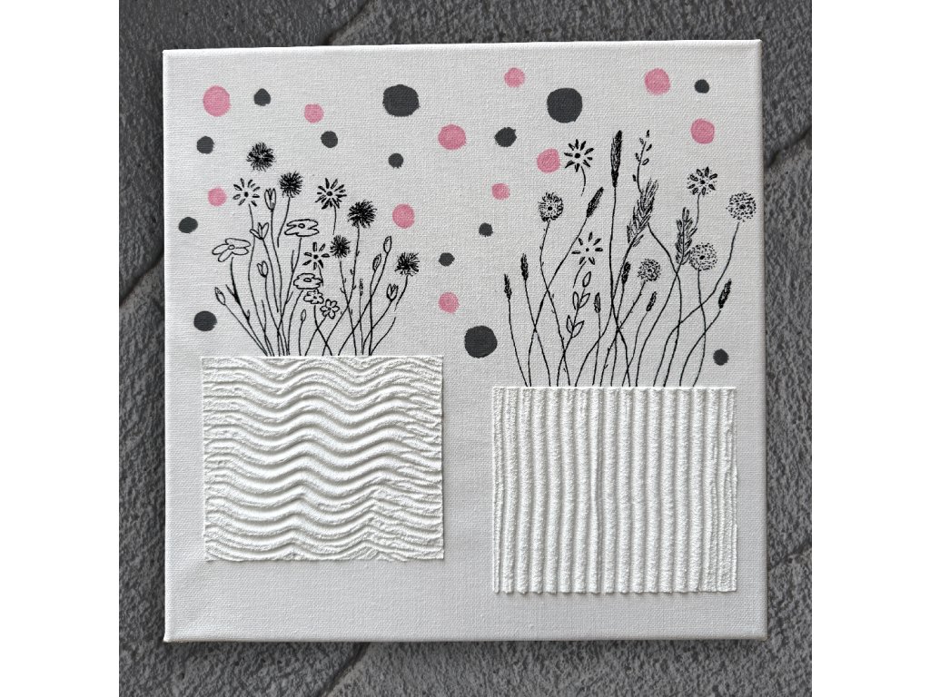 Květiny - Originální akrylová malba na plátně s pískovou pastou.